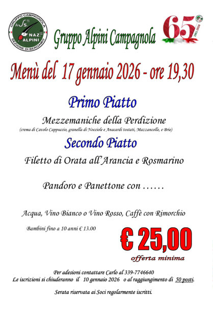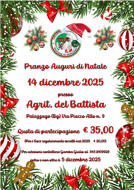 Il costo del pranzo è di € 35,00 (per i Soci del Gruppo regolarmente iscritti nel 2025 sono € 20,00) e sarà occasione anche per il rinnovo associativo 2026. Se sei interessato contattaci entro il 5.12.2025 ai numeri sotto riportati.