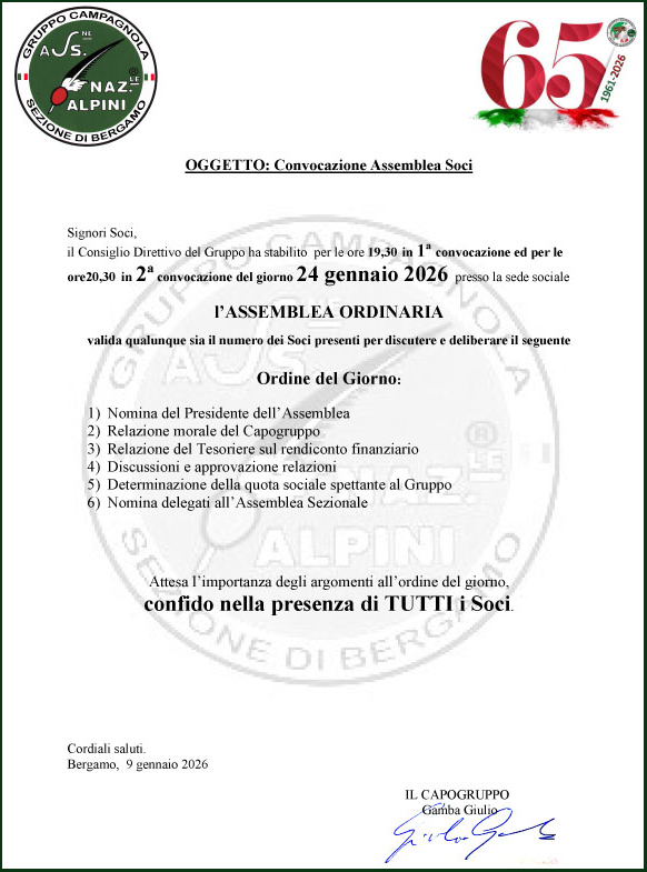 Sono disponibili i bollini per il tesseramento 2026. La chiusura è fissata per il 10/02/2026.